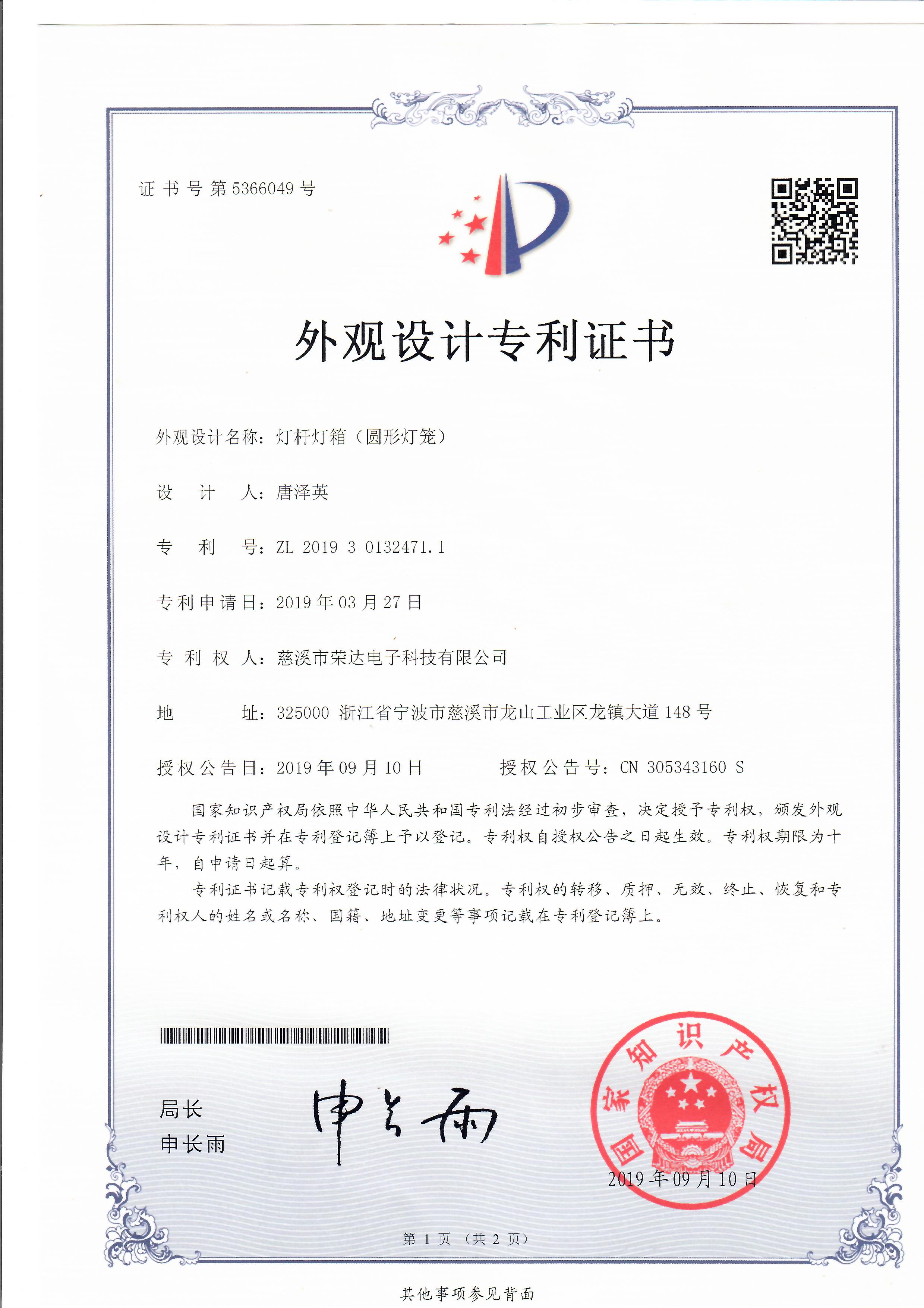 [上一條]:中國結燈桿燈箱專利:ZL201830713091.2