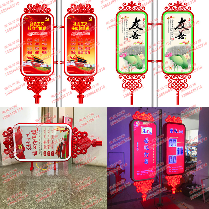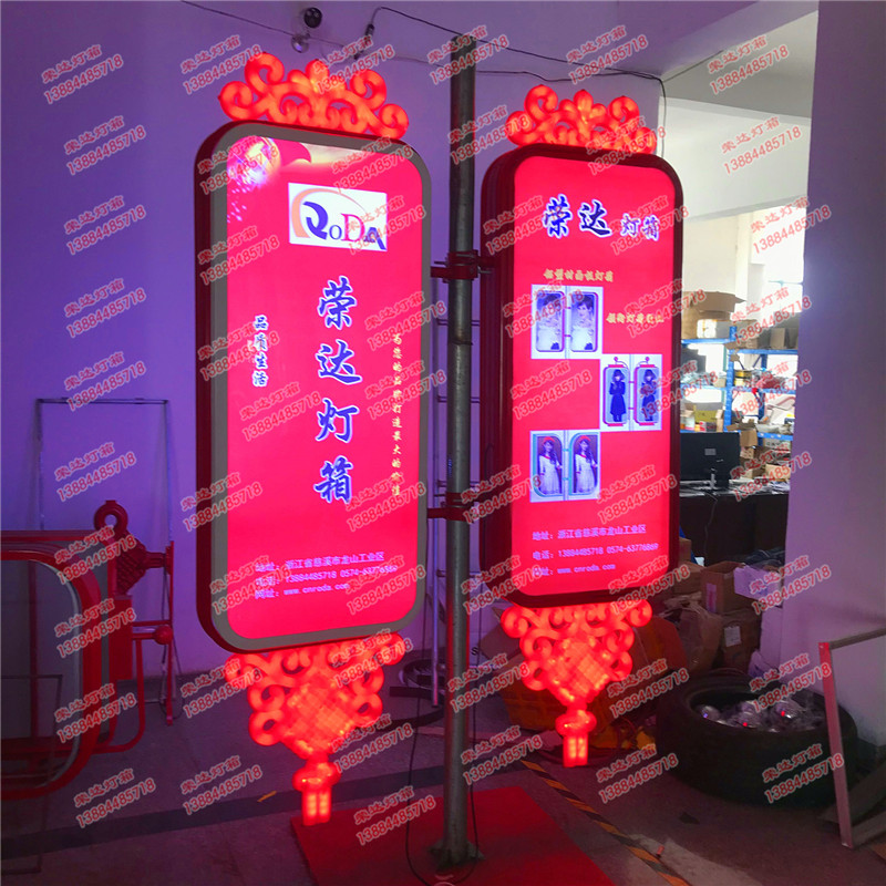 本介紹資料由慈溪市榮達電子科技有限公司提供(轉(zhuǎn)載請注明出處) 路燈燈箱款式可分:書形路燈燈箱,旗形路燈燈箱,斜梯形路燈燈箱,長方形路燈燈箱,圓形路燈箱,腰鼓形路燈燈箱,燈籠形路燈燈箱,鼓形路燈燈箱,葉形路燈燈箱,龍鳳形路燈燈箱等等。 路燈燈箱又名燈桿廣告牌,電線桿燈箱,燈桿廣告燈箱等 路燈燈箱按材質(zhì)可分:不銹鋼路燈燈箱,鋁型材路燈燈箱,鍍鋅鋼板(彩塑)路燈燈箱和玻璃鋼路燈燈箱。 路燈燈箱按視窗面板可分為:無面板(拉布)路燈燈箱,透明面板路燈燈箱, 吸塑(亞克力)面板路燈燈箱. 近年來隨著實體經(jīng)濟的整體不景氣,廣告行業(yè)的影響頗大,戶外立式廣告燈箱的投放,比往年已經(jīng)逐漸減少,成本高,廣告收益低,不少廣告大型廣告公司已經(jīng)轉(zhuǎn)型,開始投放電線桿廣告這塊,成本低,收益快。 以下是部分路燈燈箱圖片展示: 1.中國結(jié)路燈燈箱