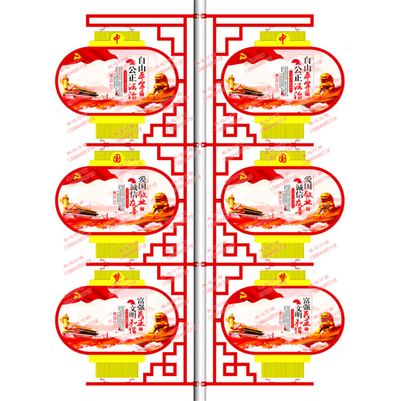 通體發光燈籠燈箱的工藝與結構: (1)、冷成型或金屬沖壓成型。 (2)、尺寸和顏色可按客戶要求。 (3)、表面處理靜電噴塑+烤漆,燈箱內部做防銹處理。 (4)、內部骨架由鍍鋅方管組成 (5)、設固定畫面內圈,由鍍鋅方管組成。 (6)、光源采用T4節能燈管,eefl冷光源,或LED光源,節能,環保。 (7)、采用插銷式設計,無需螺絲,鎖具等等,高空作業可方便的換畫面,無需再將整個燈箱都拿下來。