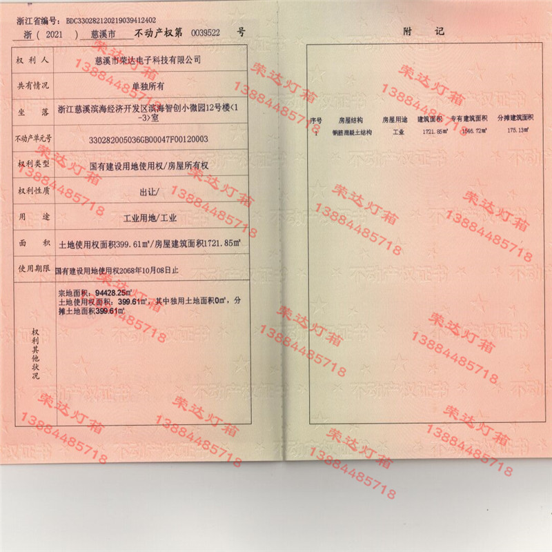 2021年5月29日榮達燈桿燈箱公司搬入自主產權新廠房,總面積達5000平方,以下是自主產權房產證: